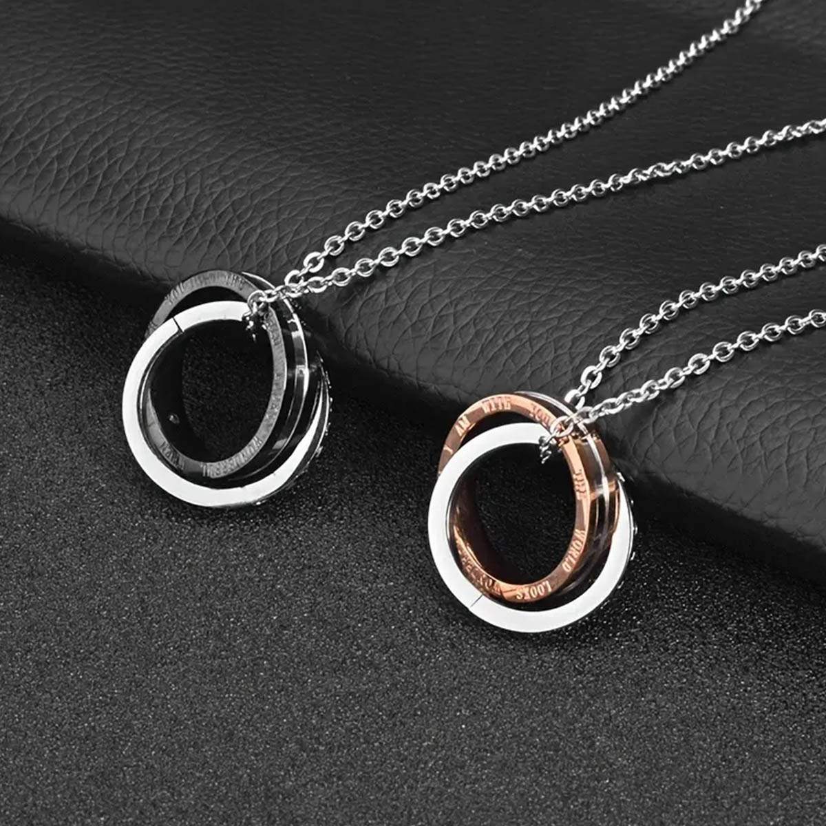 Stylish και ρομαντικό κολιέ με double-ring και love message σε διπλό χρώμα. Ένα μοναδικό κόσμημα που θα εντυπωσιάσει και θα γίνει το αγαπημένο σας αξεσουάρ.